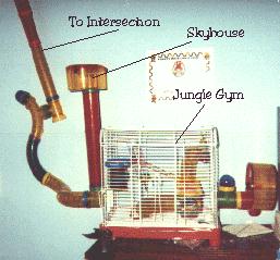 This terminus of Frankenstein's Castle, in the lounge, is the Jungle Gym. Hamsters love to climb the bars and run on the wheel.
