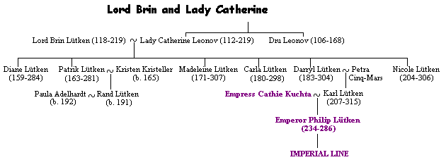 Catherine Leonov (TE 112-219) served on the Imperial Council from TE 147 to TE 219. Brin Lütken (TE 118-219) served from TE 153 to TE 219. They fell in love and became the perfect storybook couple, capturing the hearts of the Empire. In TE 158 they married.