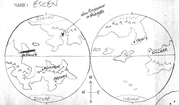 Capital city is Nerang (originally "New Rangoon.") Other important cities include Moulmein, Arakan, Magwe, Silchar, and Tavoy.