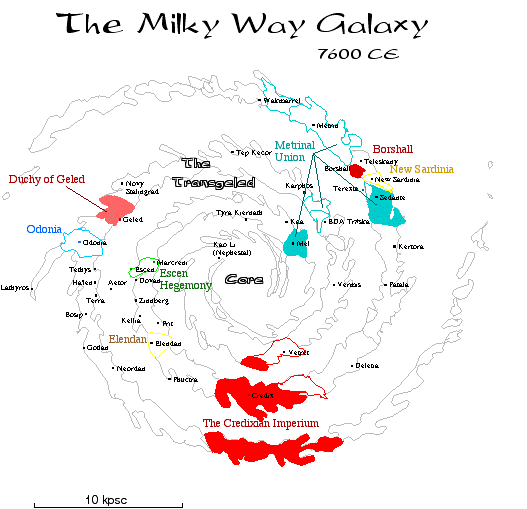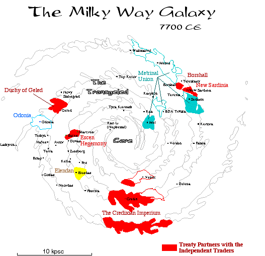 About 7650 CE, the Adelhardts of Teleskany allied themselves with New Sardinia and Borshall through a series of diplomatic marriages. Working through the Independent Traders, the Adelhardt Family entered into an alliance with the Credixian Imperium, assuring peace and mutual co-operation between Credix and Teleskany/Borshall/New Sardinia.